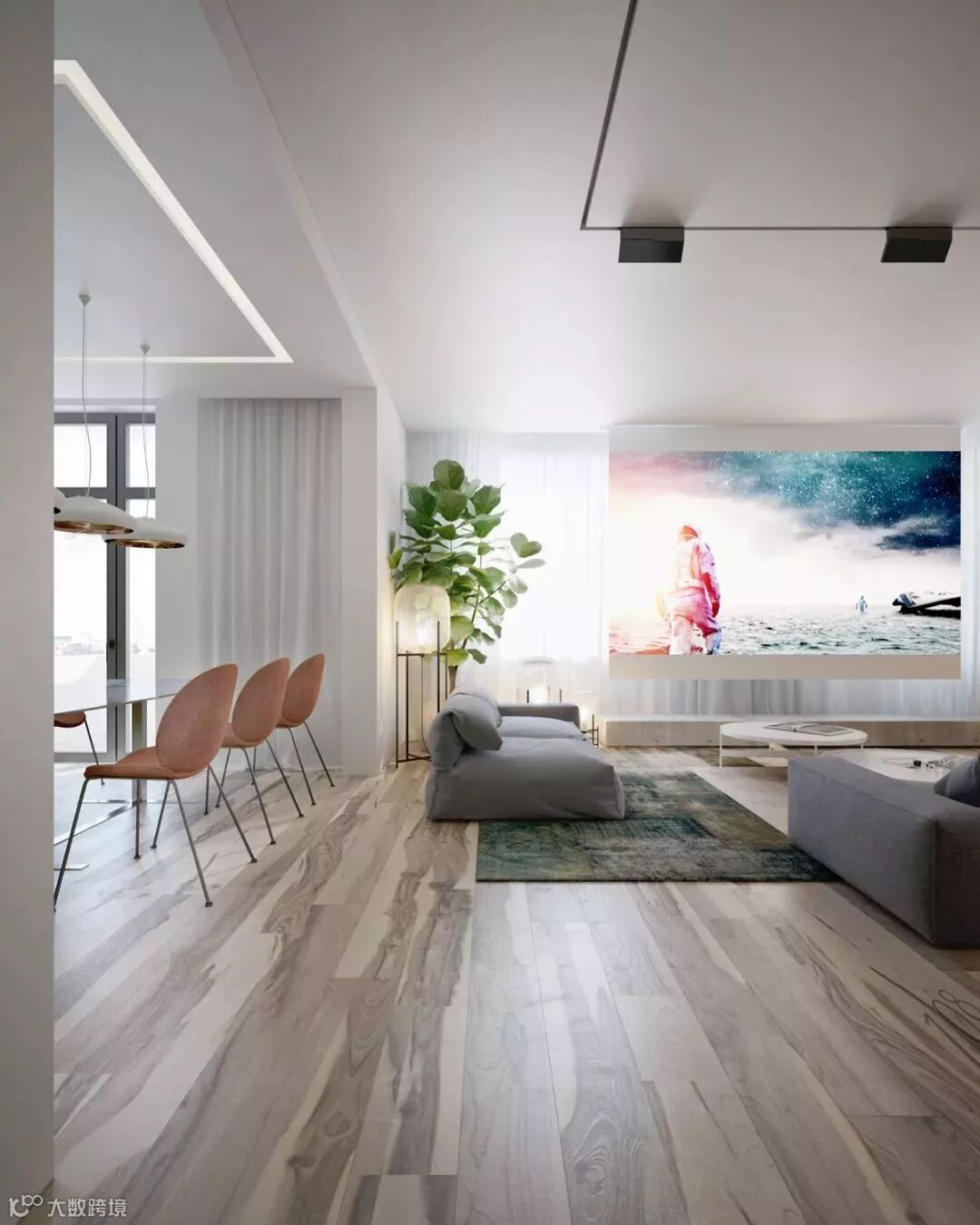有些甚至将书房、办公区乃至游乐区纳入其中,最大程度地让视线得到延展,增强家庭交流,乍一看仿佛住在了大别墅里。