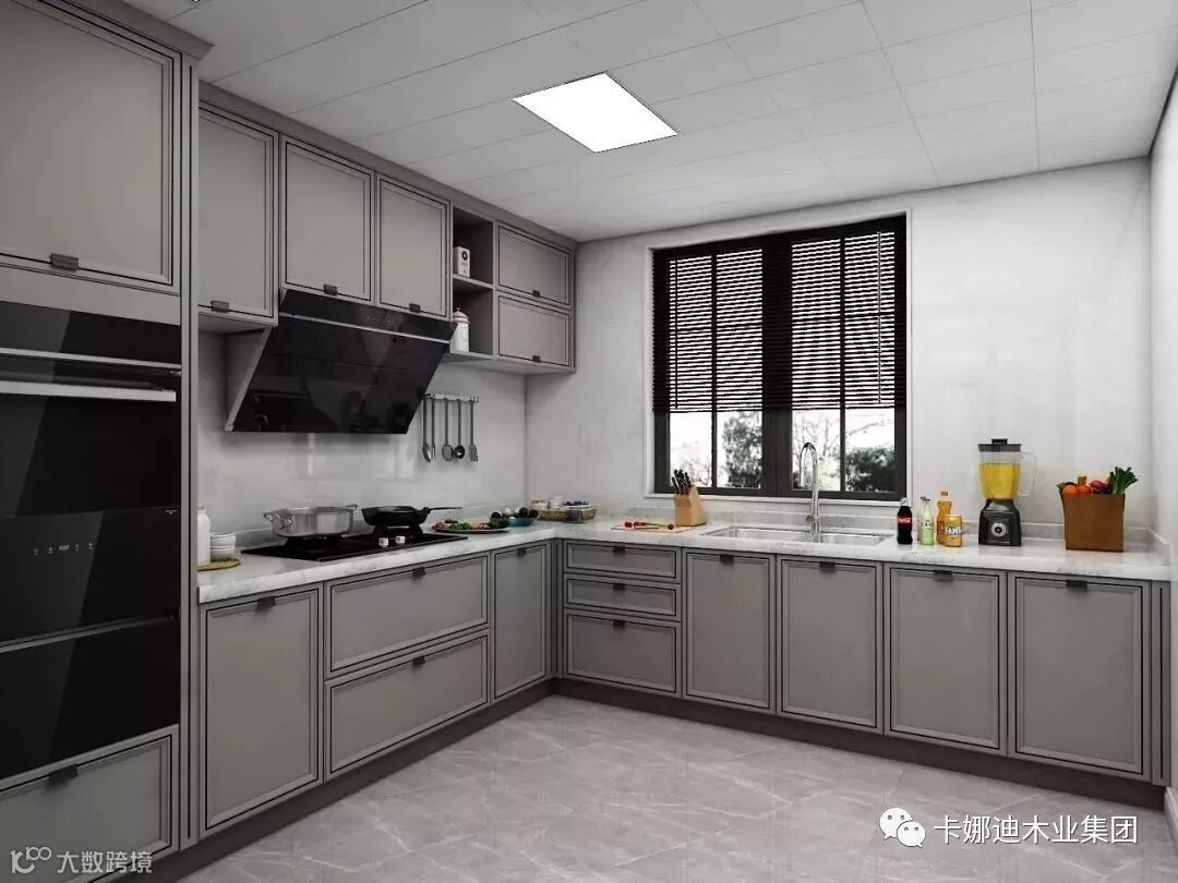 厨房采用L型布局,充分利用中间区域,在洗、切、炒过程内形成三角活动曲线,容纳多人作业。