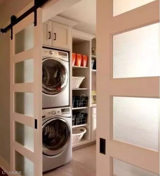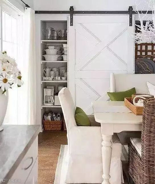 (3) 用于储物间,想把洗衣房、储物间设计在过道或者转角空间,可以装个谷仓门。
