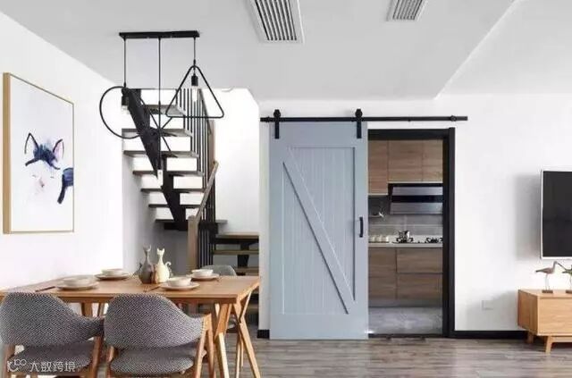 由于谷仓门的材质大部分都是属于比较容易被油烟污染的,清理也非常麻烦,加上上方的吊轨也非常不好清理~所以厨房还是不建议装谷仓门。