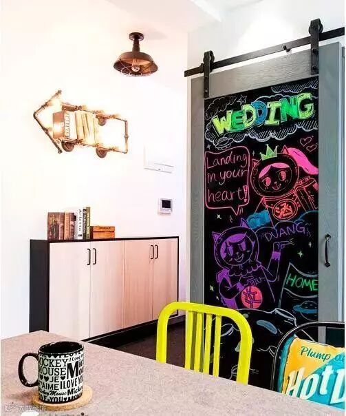 (1)可以把门板做成黑板墙、照片墙,一举两得