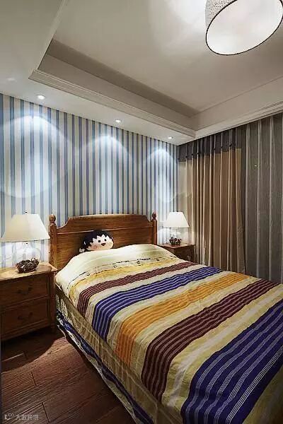 蓝白相间的竖条壁纸,略带一些地中海风,给孩子带来清新的童年。