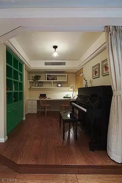 这个就是前面说是休闲区了。里面是桌子,外面是钢琴,也可以当做书房用。