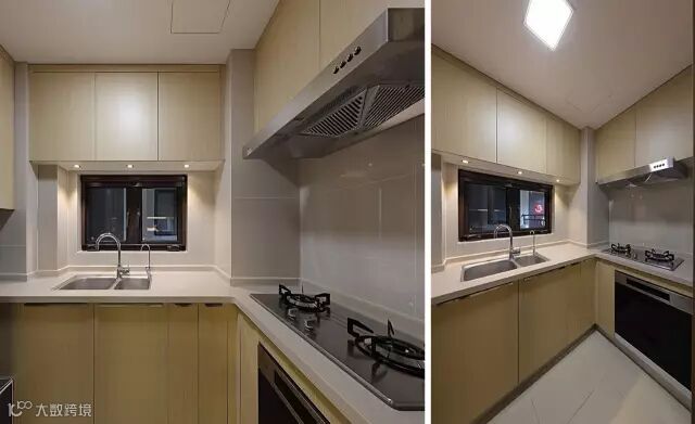窗户上的吊柜增加了不好收纳空间。