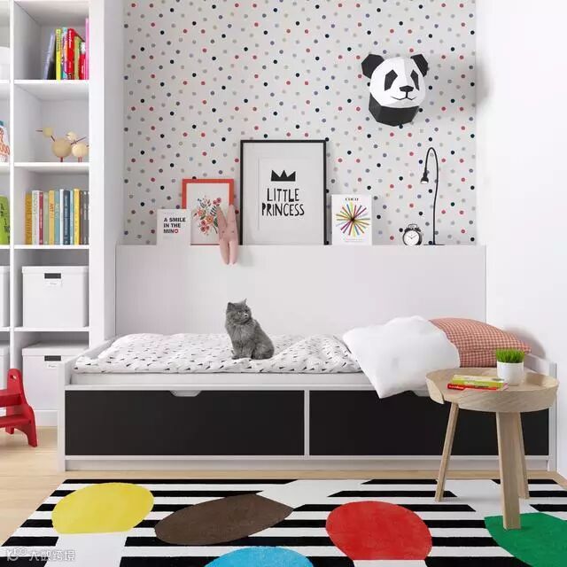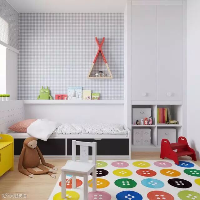 儿童房的设计被铺天盖地的色彩点亮渲染,白色的空间也更多地为孩子提供了发挥的余地。儿童的世界是丰富多彩的,所以儿童房却少什么都不能缺少色彩!