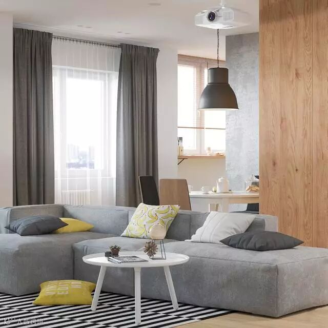 客厅的原木搭配经典的灰色布艺沙发,让空间不多不少的变得介于小清新和质朴之间,很舒服。