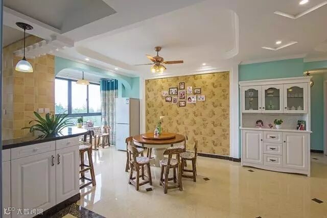 ▲白色的储物柜和天花板搭配土黄色照片墙,有地中海风的自然、悠闲。