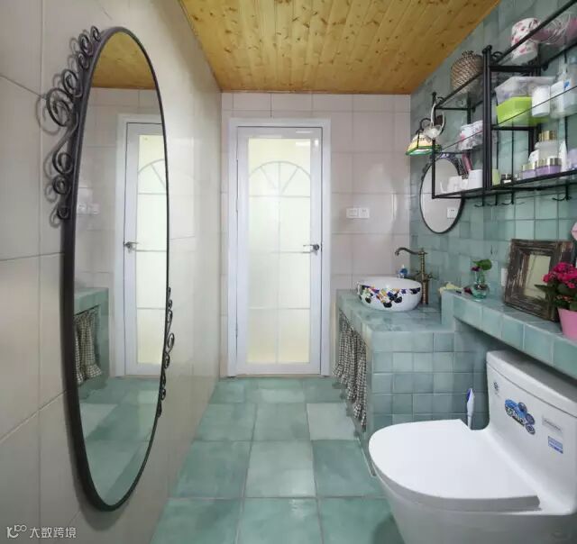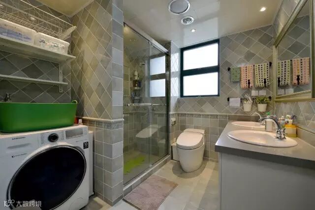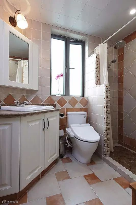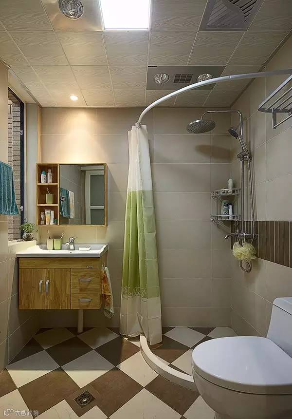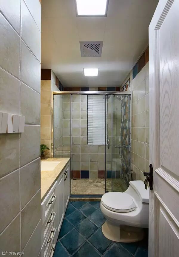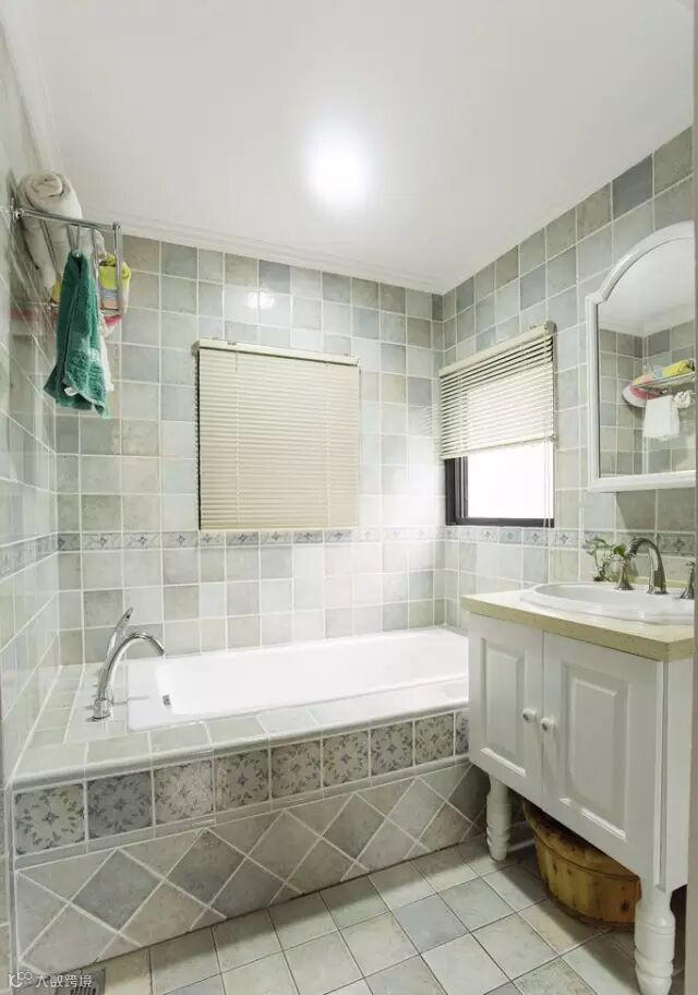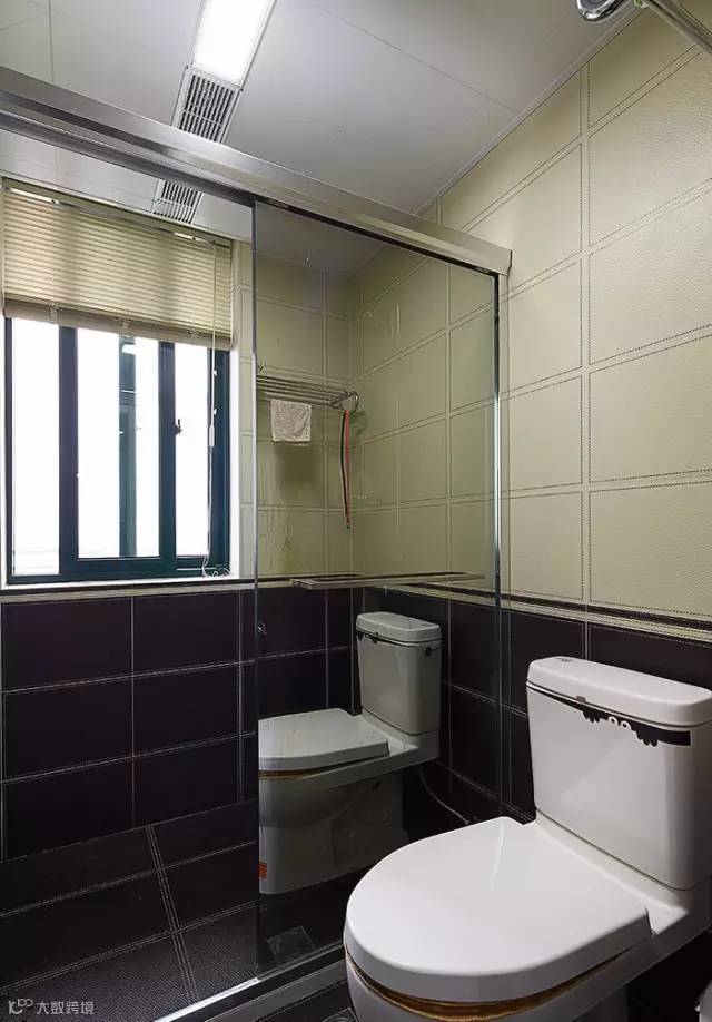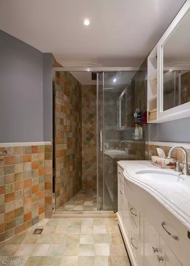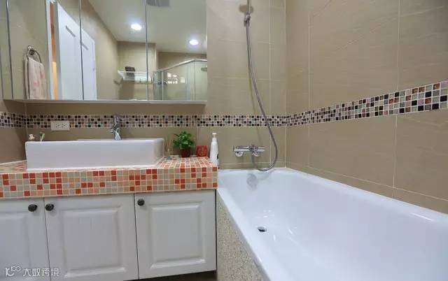 ▲ 不做腰线,顶部和底部采用不同颜色铺贴效果也不错