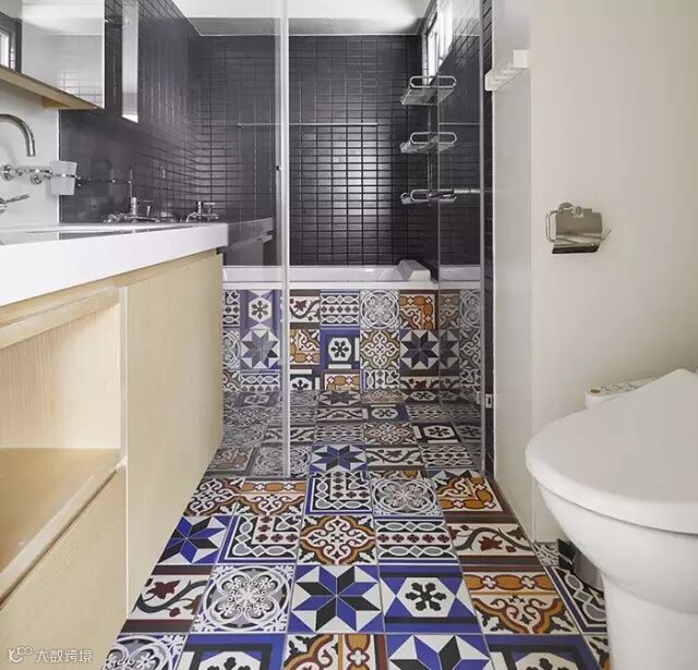 ▲ 墙砖不做花色,地砖菱形铺贴,黑白搭配