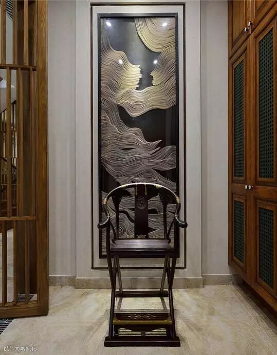 作为一个空间来说,视线尽头的画面有趣与否,也是一个着重点。这部分最常见的是放置一幅有意思的画或者物件;如果尽头前是一片空旷的区域,就尽量组成一个完整的空间画面感。