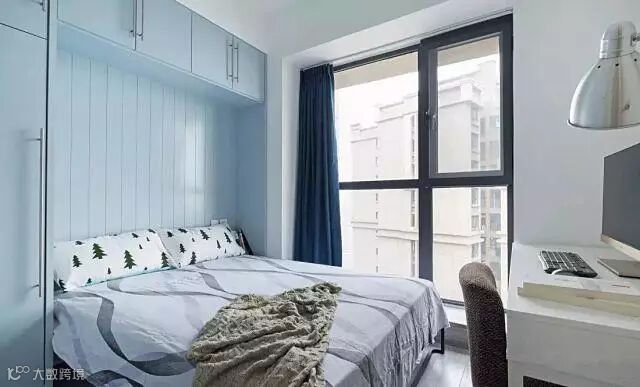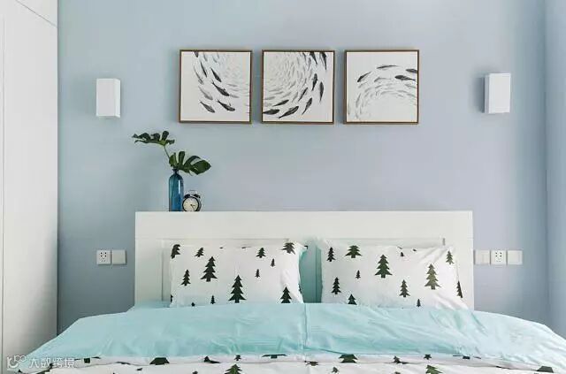 主卧依然延续了小清新的设计,颜色搭配的非常好看,也很舒服。