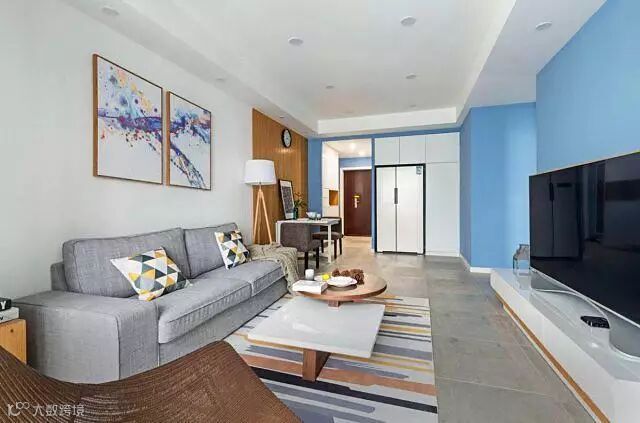 客厅这里就把阳台包进来了,左右两边做柜子,看起来客厅就显得超大。