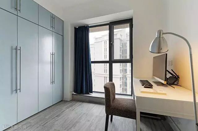 书房看起来就像是有两个超大型的衣柜一样,其实其中一个隐藏着一张床。