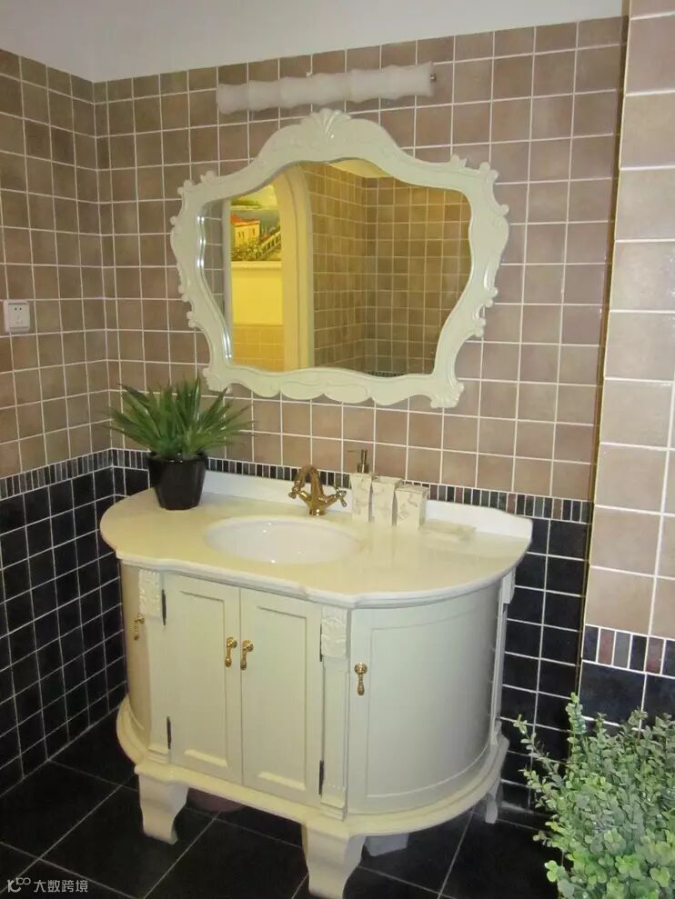 ▼卫生间,成品田园风格的浴室镜+浴室柜很独特,很吸引人的眼球;