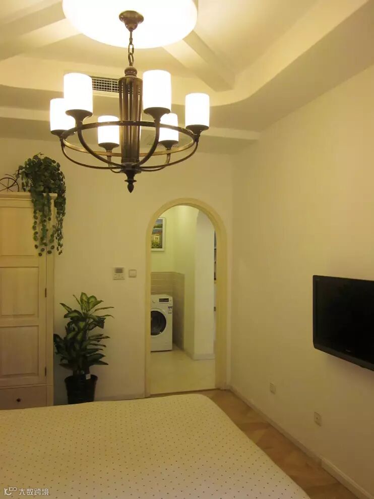 ▼卧室吊顶,做成高一点的十字造型,里面再设计低一点的圆形造型,再搭配一盏复古的装饰吊灯,很有层次感;