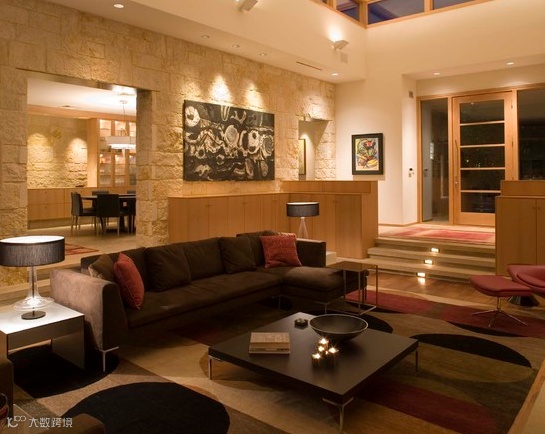 客厅的“主题墙”就是指客厅中最引人注目的一面墙,一般是放置电视、音响的那 面墙。在这面“主题墙”上,设计师采用各种手段来突出主人的个性特点。