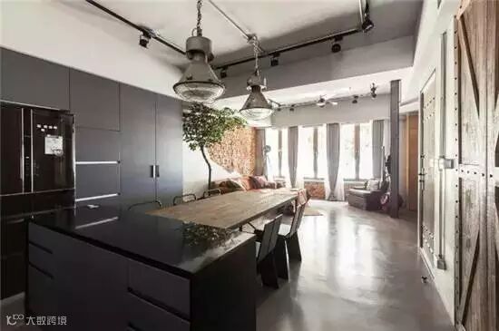 餐厅的桌椅简单却有质感,粗狂的暴露在空气中的灯光与陈旧感的吊灯都彰显着工业风的个性时尚。