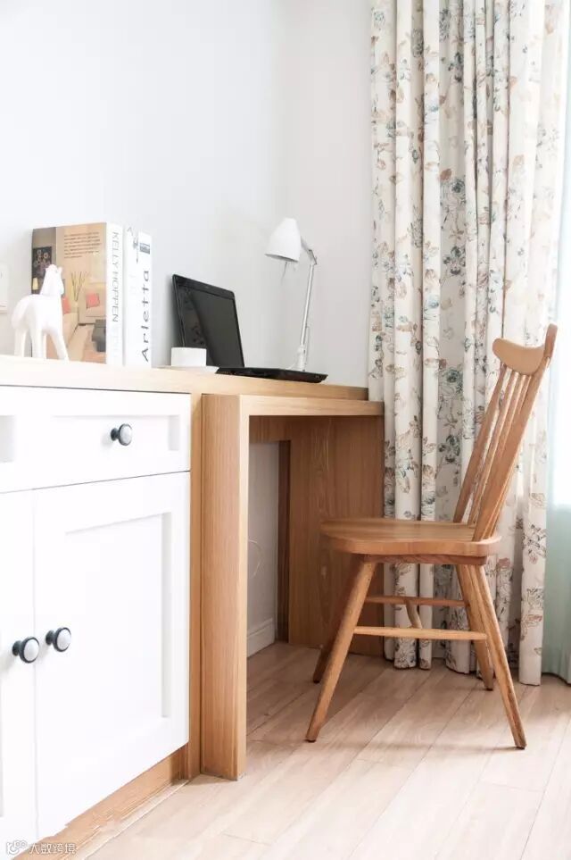 定制的书桌和收纳柜完美契合,偶尔需要在家里工作也能有良好的环境。