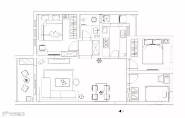 100㎡房屋面积很小,三居室自然也不会很大,对于这种情况,桌椅的简化就能为家里节省不少空间,这也是原木家具的一个特色。