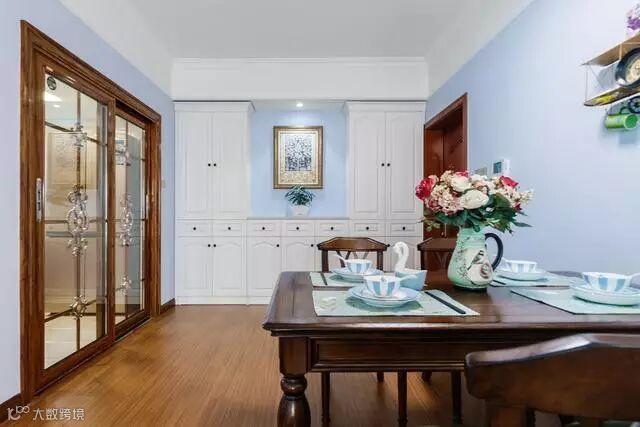 餐厅因为面积有限,所以只够放下餐桌和餐椅,而为了避免单调,屋主还在餐厅的墙上面挂了一个小饰品,为整个餐厅增加了不少的色彩。