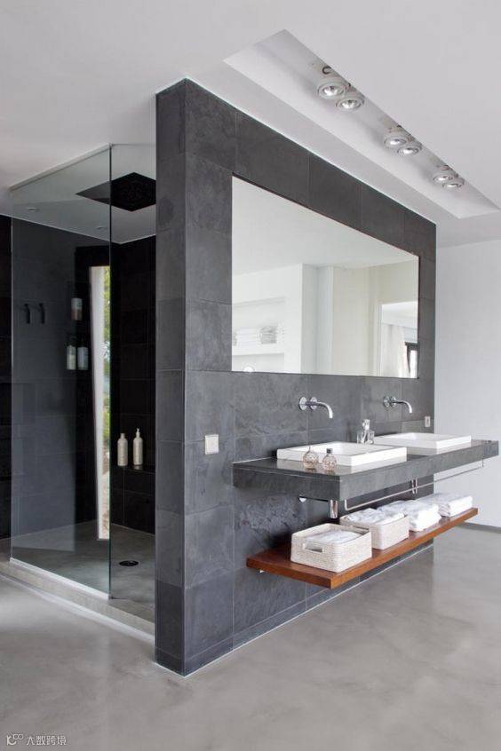 卫生间干区、湿区完美分离,围绕结构与功能并存的人性化设计,不仅具有隔断空间的作用,并且视觉上更加时尚富有空间层次感,这才是2017卫生间应具备的装修设计~