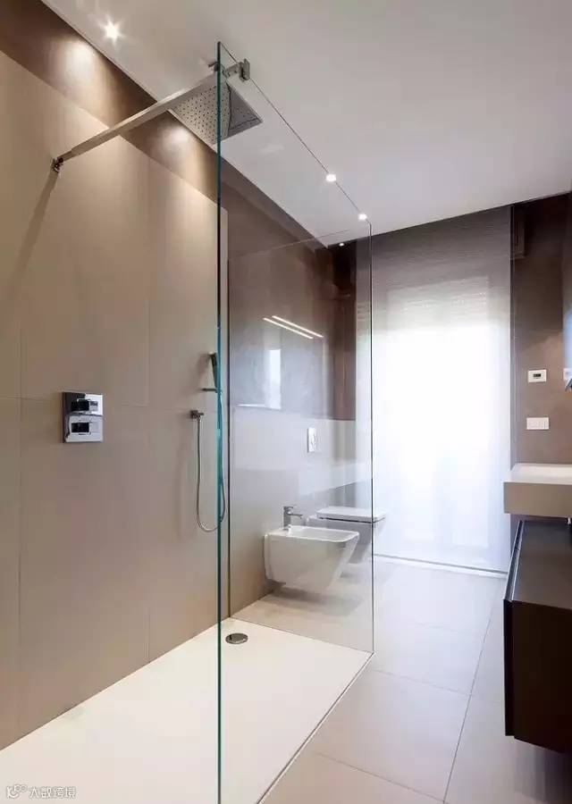 将淋浴区与是洗手台、坐便区域完全隔开