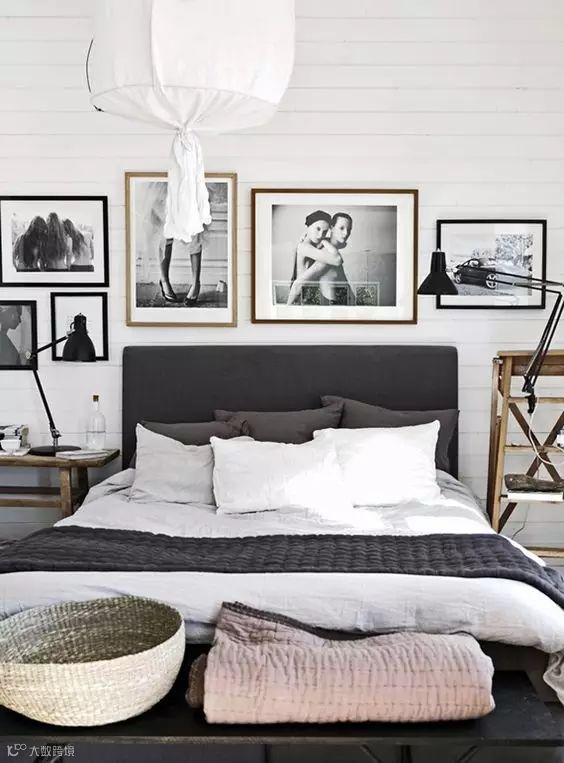 床作为卧室里的绝对主角,它不仅仅是睡觉的工具,也是家庭的装饰品之一。深受宝宝们喜爱的性冷淡北欧风,不需要斑斓的色彩。简约明亮的自然色调就足够有逼格,即便是黑白灰,也能营造出强烈的视觉效果。