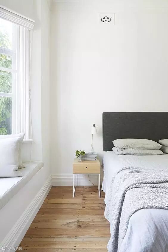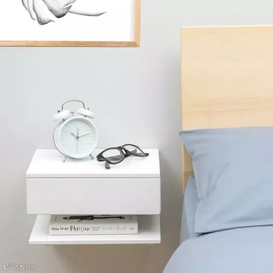 悬壁式的床头柜,不仅视觉上干净清新,还能增强空间感