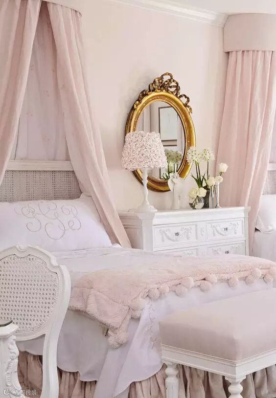 蓬松的枕头被掩在被间,轻垂的蕾丝细细摩挲着地毯