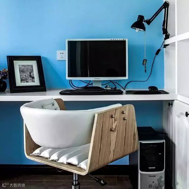 卧室及书房运用了蓝色来给生活提“鲜”味儿。这样做保证了清新的调子犹在,并注入了二人生活的暖流。