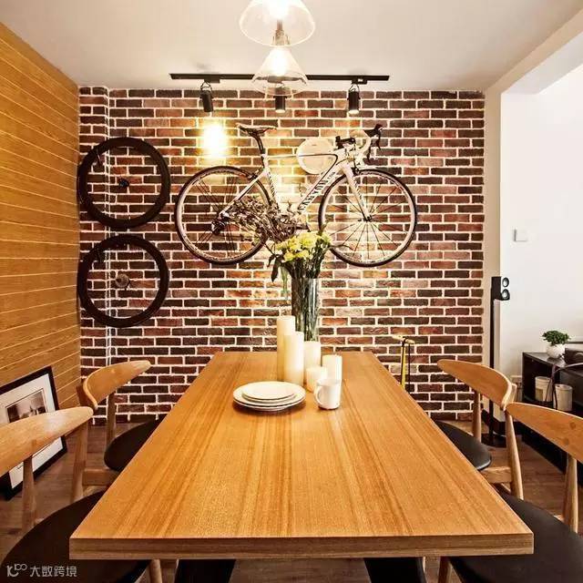 墙上挂着的自行车是业主爱好与实用的完美展示,既解决了山地车摆放占位问题,也给背景墙添上了自己独有的标签。希望整间房子的色彩表达清晰,采取了同色系浅色调的和谐搭配手法。厨房根据业主极少使用的情况采用了半开放的设计。