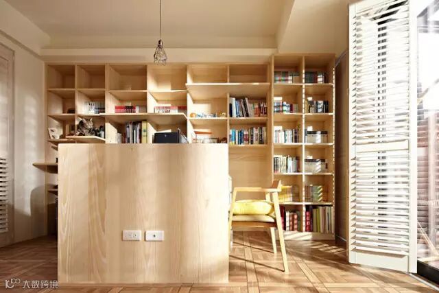 ▲利用高柜深度层序外推的书柜层板,是为猫咪保留的跳台路径,而对向设立书桌旁的留白,是未来小朋友共读的预留空间。