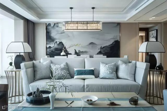 进入客厅,禅意东方的浓郁气息便迎面而来,令人内心得以平静。家具造型简约,采用棉麻、胡桃木、金属等材质打造空间内的气质元素,与香道饰品完美融合,收放自如地诠释了东方的精髓,让人倍感上流社会的优雅与品味。
