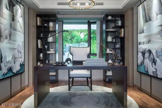 窗外的景色是书房的对景,视线毫无遮挡地从室内延伸至室外,空间也显得更加宽敞与明亮。挥洒禅韵抚琴来,高山流水觅知音。在书房的时光,是如此悠然自得。摆弄文玩,亦或沏一壶香茗,沉浸于此,让人回归内心,忘却尘嚣。
