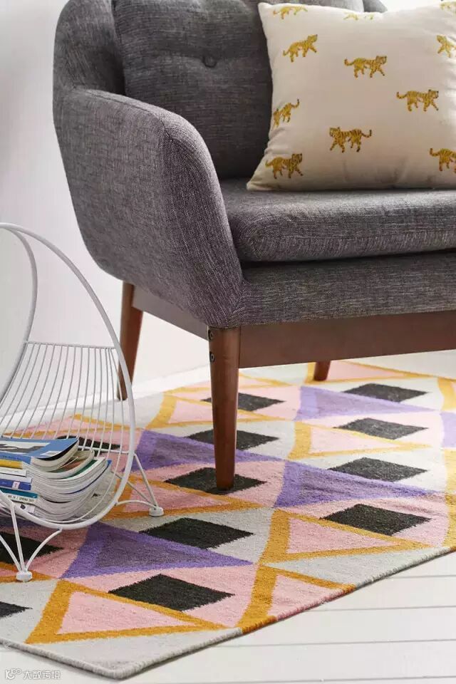 鲜艳、引起注目的地毯,能将焦点保持在地面,分散对天花板高度的注意。