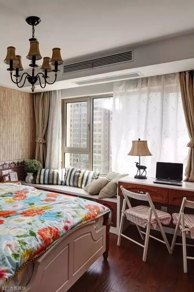 ▲主卧里本没有飘窗,但设计上与书桌一体的卡座,窗前的那一幕风景都变得更惬意了。铁艺、条纹、格子在空间里彼此呼应衬托,让自由、自然、宁静得到融洽的体现。