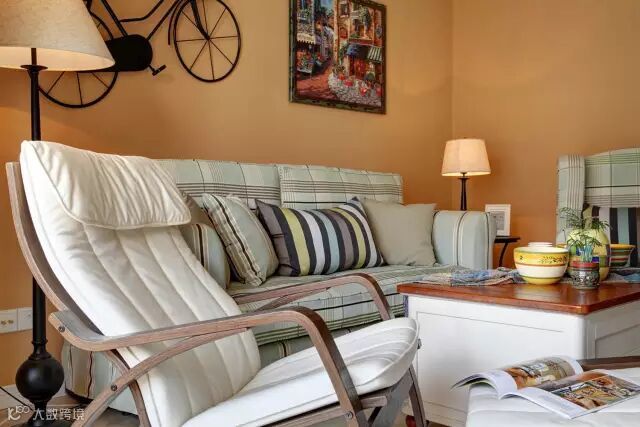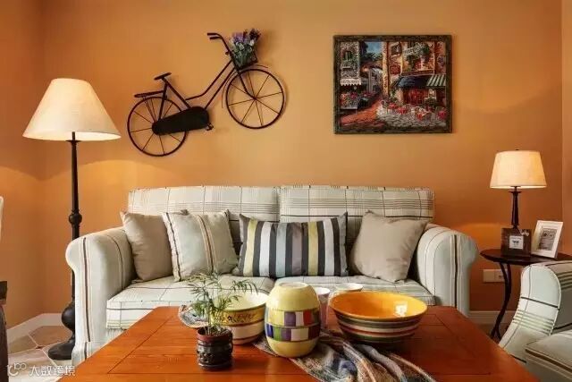 ▲挂在沙发背景墙上的自行车是不是充满了跳跃感?搭配旁边装饰画,正好把人的思绪代入到画里那个乡村街头,好像整个客厅一下子就热闹起来了。