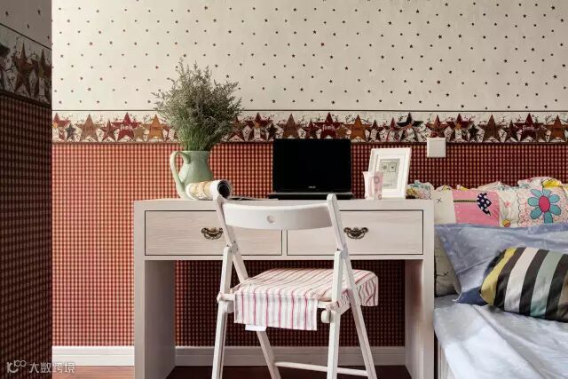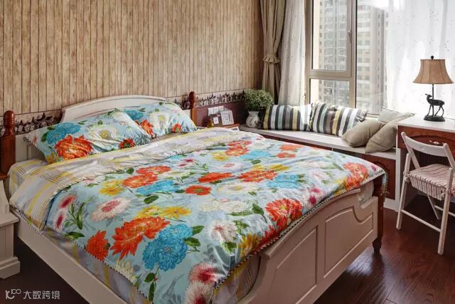 ▲背景墙的壁纸惟妙惟肖地模仿了原木条板的纹理,配合被窗帘打磨过的光线,满是清新的原味。