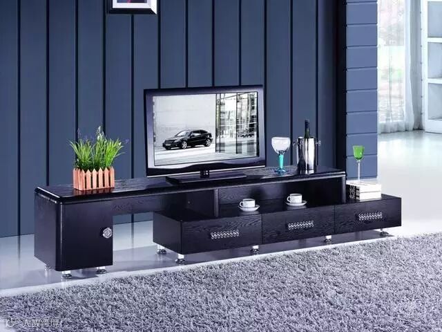 电视柜的高度,应保证观众就坐后的视线正好落在电视屏幕的中心。如果柜子太过低矮,会造成俯视,头会不由自主地垂下去,对颈椎及视力都不好。如果是挂墙电视则可以忽略电视柜的高度。