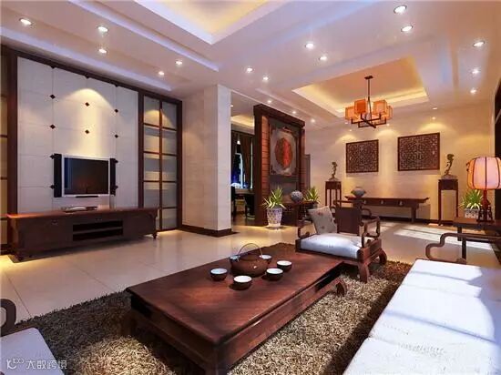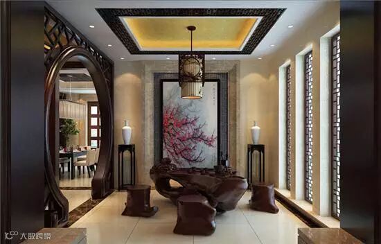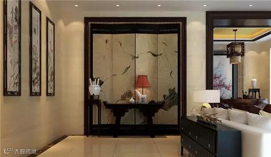 其他:中式风格一般都比较稳重,会增加国画、字画等挂饰,古玩,博古架等。