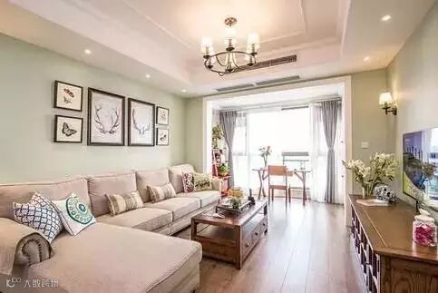 米白色沙发宽大柔软,孩子在上面玩耍、打闹也不会担心磕着碰着,沙发就是天然的蹦蹦床。