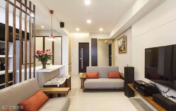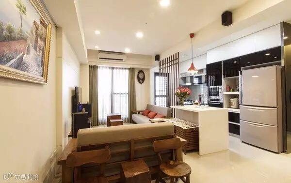 餐厅在客厅的角落,与木格栅成为客厅、厨房为分界。空间的开放感受与功能使用,要是觉得油烟比较大,可以在木格栅前后加设玻璃。这样的设计感觉到很贴心。