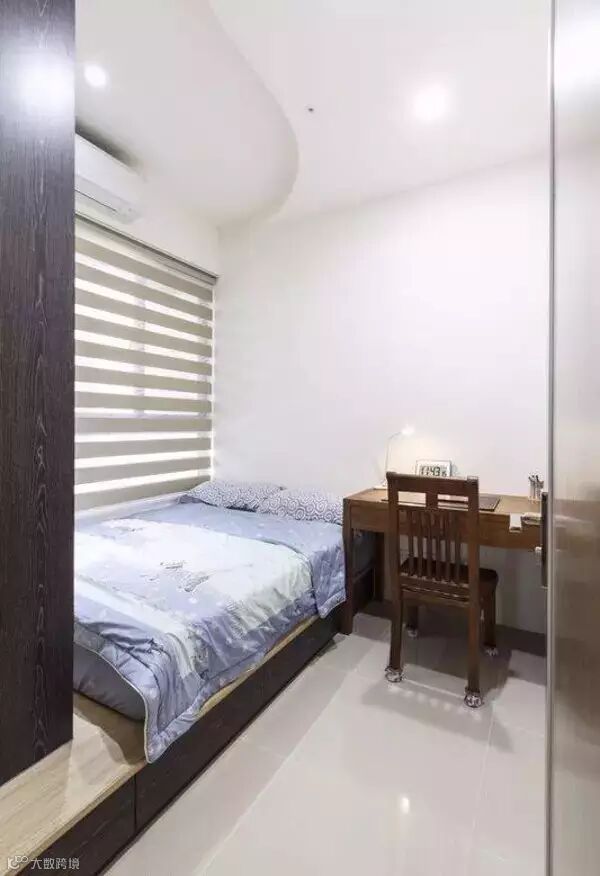 次卧以架高床结合面对床铺的衣柜,设计了足够的收纳空间。简单的功能配置,贴心考虑未来两个老人在生活上的需求。