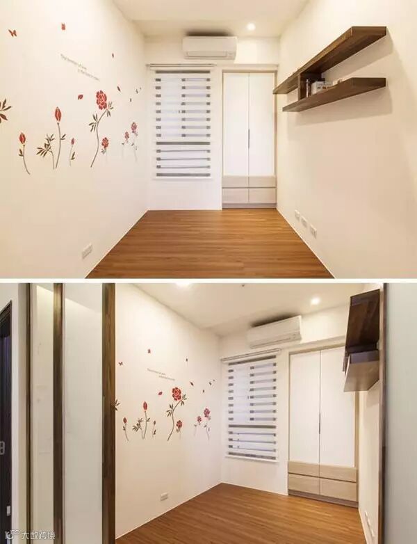 还有第三间房间原本打算用作书房,但是考虑到次卧已经有了办公区域,就想把这间房间更多的用在收纳上。搭配简单的收纳、层板,搭配不同的空间使用,可以根据不同的需求来变化这间房间。
