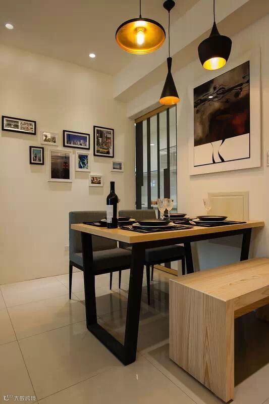 餐厅部分用了玻璃移门让空间能够更通透一些,墙面空白部分都有装饰画做了装饰填充。