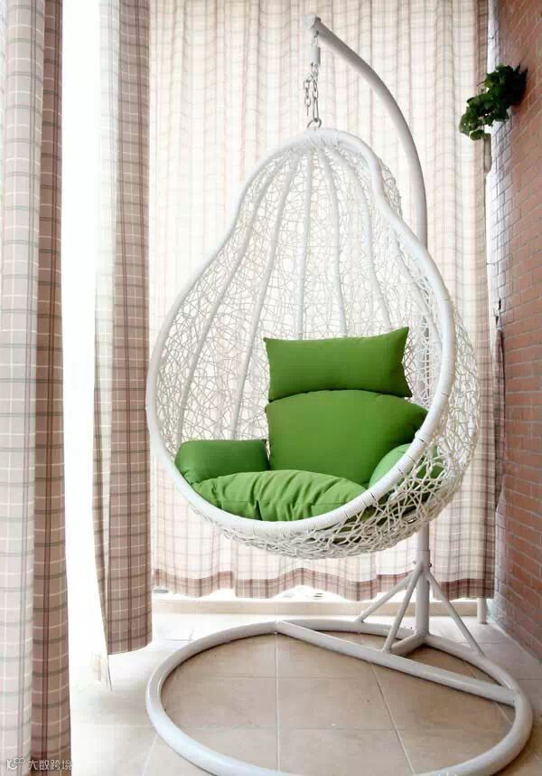 在卧室阳台的角落放置一个这样的秋千椅,闲暇时分窝在上面,浪漫又惬意