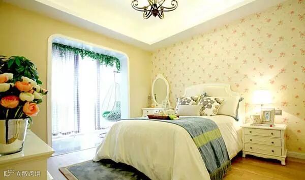 米黄色碎花墙纸和白色家具搭配自然,浪漫清新。