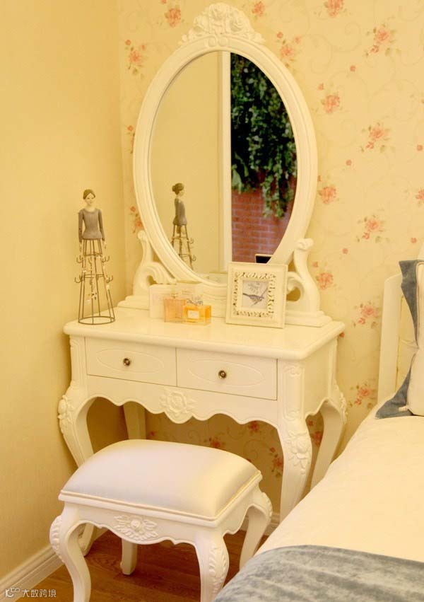 纯净的象牙白梳妆台,宁静中的美丽透着天然的高贵与典雅,营造一个浪漫的小天地,充分体现主人的高雅气质。