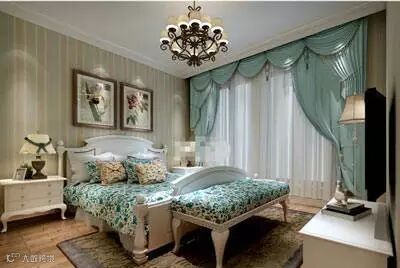 柔软舒适的床品,浅色碎花墙纸,再搭配海蓝色的地毯,将卧室阳台打通,光线透过落地窗投入室内,显得更加清爽、舒适,打造完美的卧室空间。