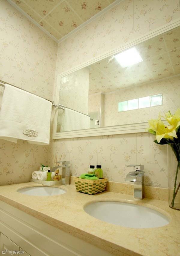 米白色的碎花瓷砖将浓浓的田园之色融入到卫浴空间中。